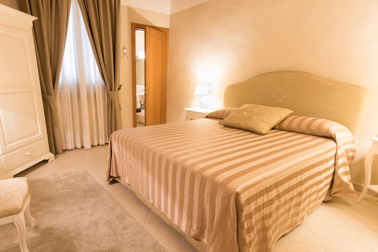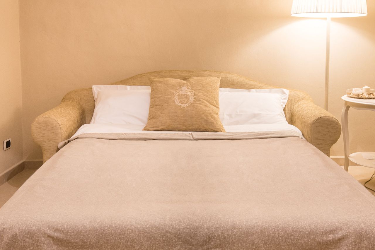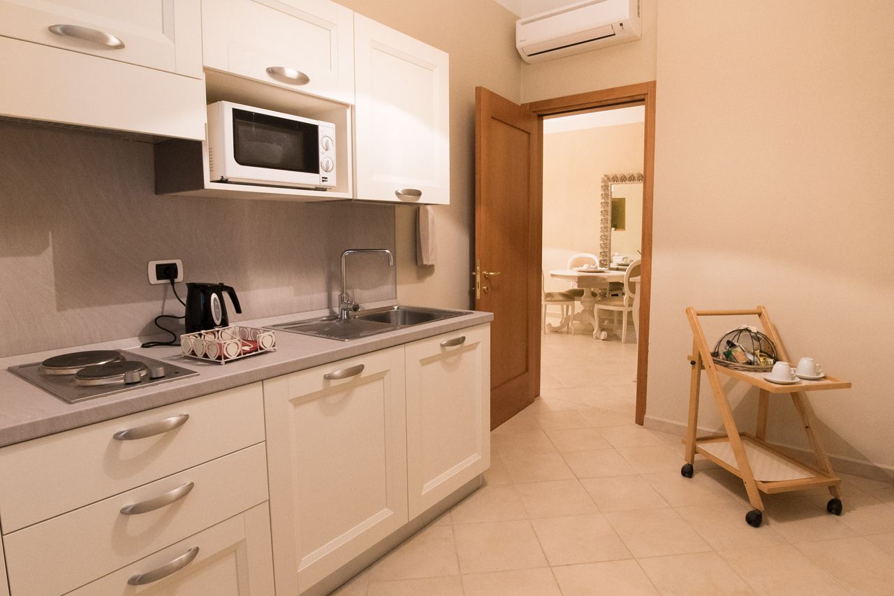 La Suite può ospitare fino a 4 persone, (2 adulti, 2 bambini) con 2 posti in camera matrimoniale e 2 posti nel divano letto (per quest’ultima richiesto supplemento di €25 a persona). La suite dispone di tutti i servizi, aria condizionata, riscaldamento autonomo, asciugacapelli, kit cortesia, tv led a schermo piatto, connessione Internet Wi-Fi, lavastoviglie, frigo-freezer, bollitore elettrico, forno a microonde, caffettiera italiana, lenzuola e asciugamani. Ampiezza del letto in una camera matrimoniale: 200×150.